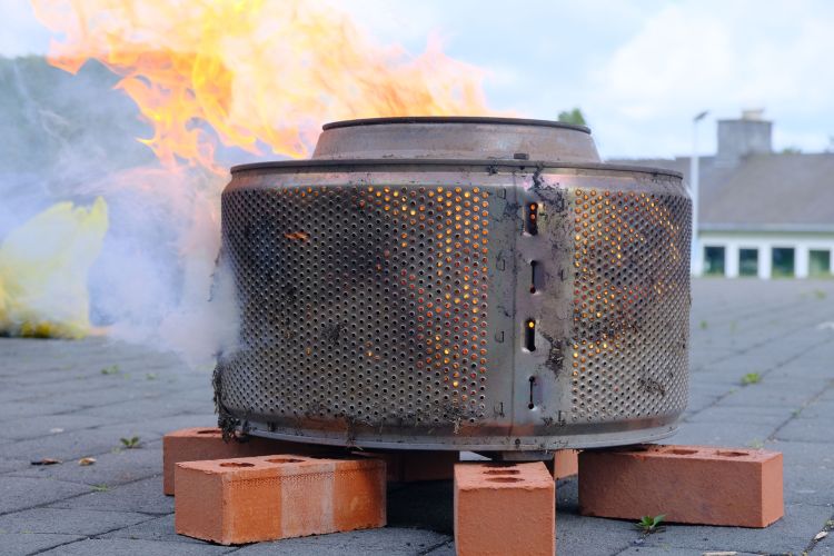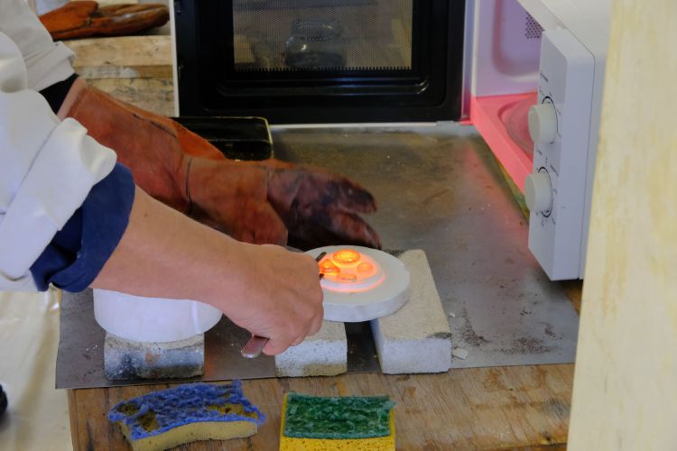 Mise en place d’un atelier RAKU : cuisson des sculptures émaillées dans un four à bois (jusqu’à 1000°C), ouverture du four, suivi de l’enfumage, du rinçage et du nettoyage des bijoux achevés